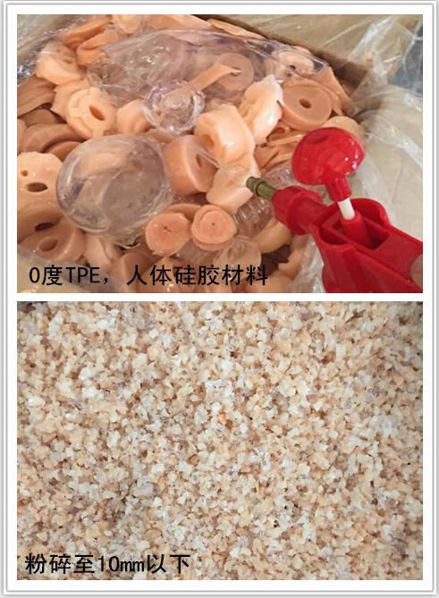 彈性體粉碎機(jī):可粉碎軟膠,彈性體如:TPE,TPR,TPU,TPV,PU,SEBS,硅膠等軟性塑料,且可以24小時(shí)連續(xù)工作,不粘刀,不結(jié)團(tuán),不堵篩網(wǎng)。