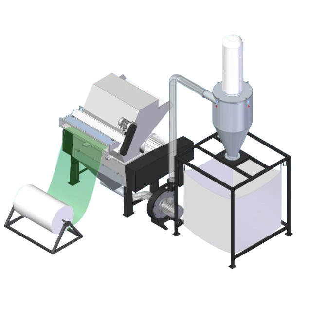 適用于熱成型,紙杯,環保餐盒,吸塑包裝等成型機尾端,用作網狀余料的在線粉碎,輸送,儲存。
